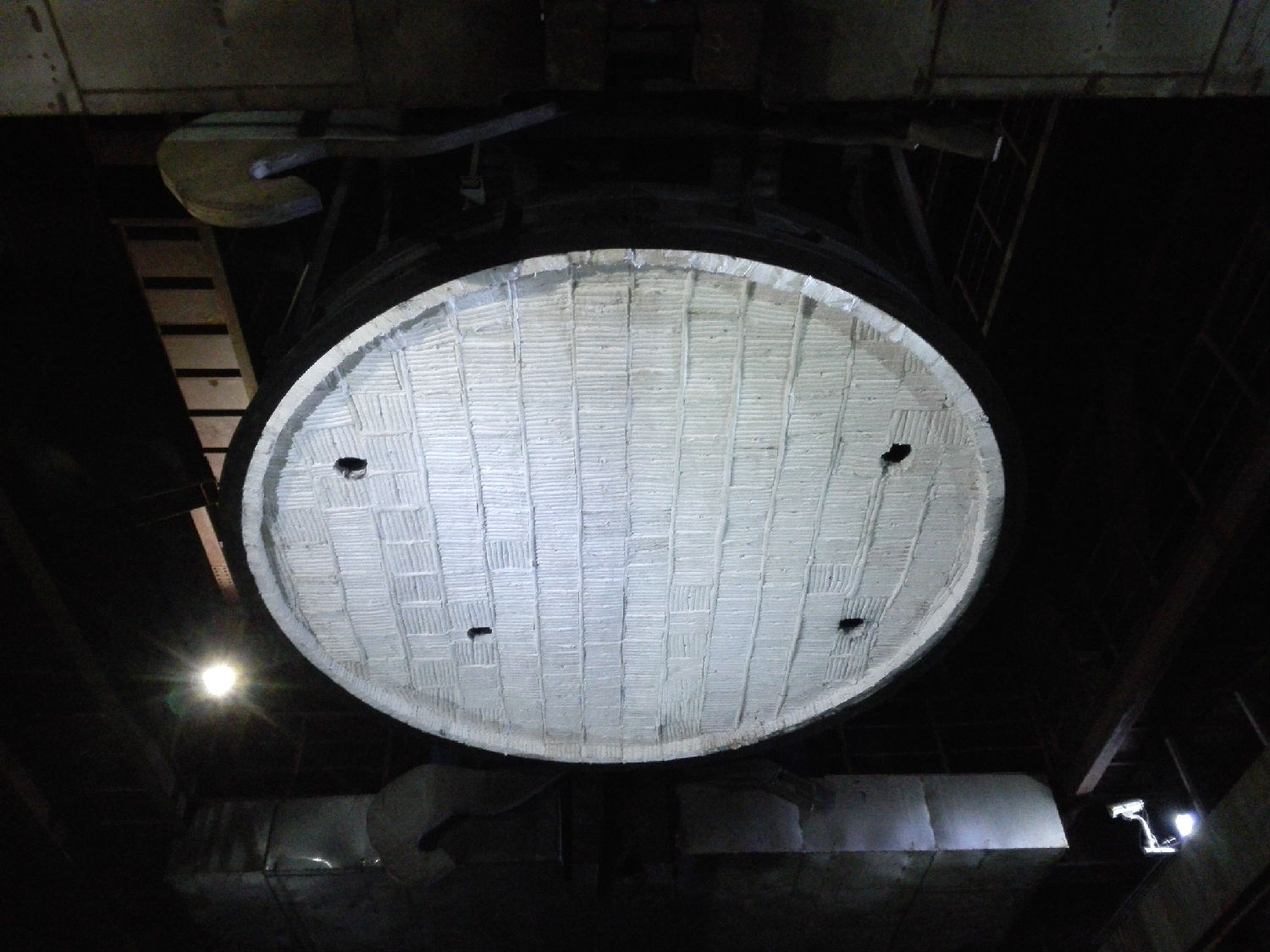 干熄焦焦罐蓋耐火隔熱材料最早采用不銹鋼網固定的方式,而在實際應用,不銹鋼網易氧化脫落致使干熄塔不能工作。公司與配套廠家經多次試驗最終確定采用含鋯型陶瓷纖維模塊,固定用螺栓包在隔熱材料內,離熱面還有一段距離,解決了高溫氧化問題,該方案在給國外客戶提供的提升機中得到了國外客戶肯定,并延用至今。