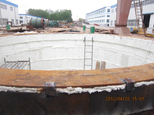 ● 井式滲碳爐耐火保溫爐墻部分:總保溫厚度為300mm,由熱面到冷面依次為陶瓷纖維折疊塊+層鋪毯的復合爐襯結構,其中折疊塊厚度為270mm,材質為高純型;背襯層由二層厚度為20mm纖維毯壓縮到30mm。