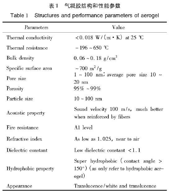 氣凝膠按組分可分為氧化物氣凝膠、有機(jī)氣凝膠、炭/石墨烯氣凝膠、碳化物氣凝膠、硫族氣凝膠以及金屬氣凝膠等。氣凝膠材料具備很低的密度, 2013 年報(bào)道了密度低至0.16 mg/cm'的很彈性全碳?xì)饽z, 2014年報(bào):道了密度低至0.12mg/cm的很彈性多功能化的三維納米纖維氣凝膠 。氣凝膠材料也是世界上熱導(dǎo)率較低的固體材料,其室溫?zé)釋?dǎo)率低于100 kPa、20 C干空氣的熱導(dǎo)率(0.025 W/(m. K)),被稱為絕熱材料。除此以外,氣凝膠材料還具備高孔隙率、高比表面積、低折射率、低介電常數(shù)等特性,表現(xiàn)出優(yōu)異的光學(xué)、熱學(xué)、聲學(xué)、電學(xué)特性(表1),在工業(yè)保溫、建筑節(jié)能、航空 航天、化工冶金、環(huán)境治理等領(lǐng)域展現(xiàn)出很大的應(yīng)用價(jià)值和廣闊的應(yīng)用前景 。2017年10月,Market Re-search.biz的研究報(bào)告指出:2016年全球氣凝膠市場(chǎng)價(jià)值為5.129億美元,2017 ~ 2026年復(fù)合年增長(zhǎng)率預(yù)計(jì)為31. 8%,2026年全球氣凝膠市場(chǎng)價(jià)值將達(dá)到80. 837億美元。本文即主要對(duì)二氧化硅基氣凝膠和有機(jī)氣凝膠的發(fā)展進(jìn)行了論述,同時(shí)介紹了氣凝膠在絕熱和吸附領(lǐng)域的研究進(jìn)展。